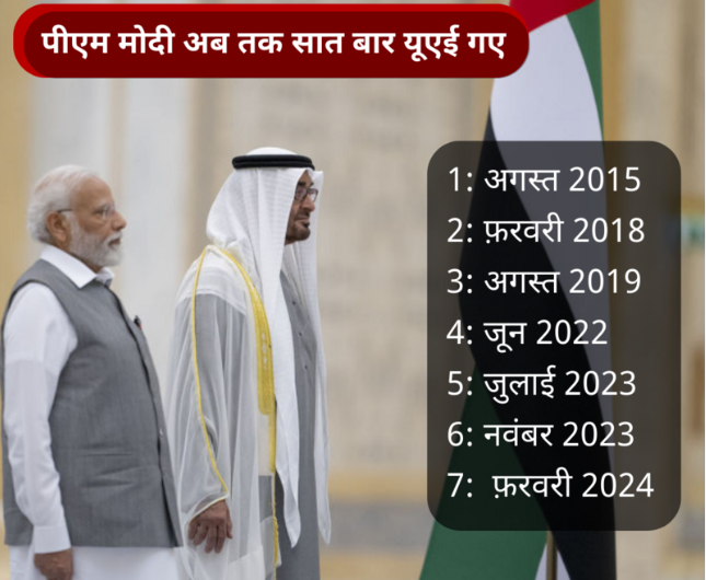 नरेंद्र मोदी प्रधानमंत्री बनने के बाद सातवीं बार यूएई जा रहे हैं.