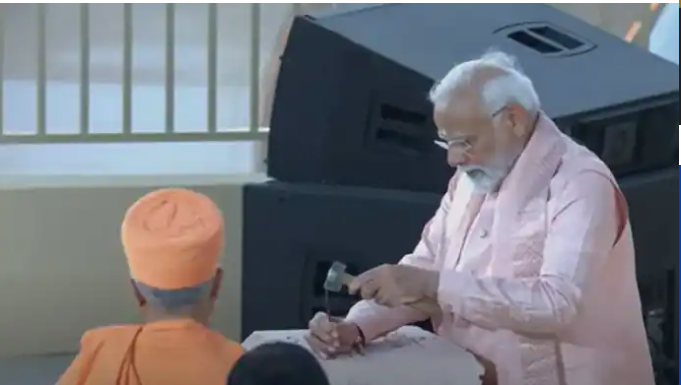 प्रधानमंत्री नरेंद्र मोदी (Narendra Modi) ने अबू धाबी के पहले हिंदू मंदिर में पत्थर पर ‘वसुधैव कुटुंबकम’ लिखा। इसके लिए उन्होंने खुद छेनी और हथौड़े का इस्तेमाल किया।