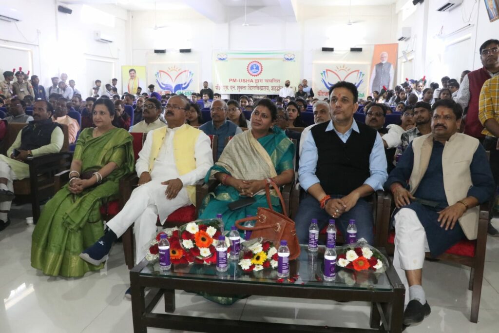 आज पीएम उषा योजना का शुभारंभ प्रधानमंत्री श्री नरेन्द्र मोदी ने वर्चुअली रूप से किया। पीएम उषा योजना का शुभारंभ कार्यक्रम को वर्चुअली देखा एवं सुना गया। इस अवसर पर एडीजीपी श्री डीसी सागर, कलेक्टर श्रीमती वंदना वैद्य, कुलपति पं. शंभूनाथ शुक्ल विश्वविद्यालय प्रो. रामशंकर, कुलसचिव प्रो. आशीष तिवारी सहित अन्य अधिकारी एवं काफी संख्या में छात्र-छात्राएं उपस्थित थें।