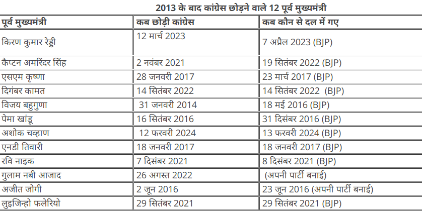 10 साल में 12 पूर्व मुख्यमंत्रियों ने छोड़ी कांग्रेस, 47 बड़े नेताओं ने भी कहा पार्टी को अलविदा; 2013 के बाद 52 चुनाव हारे