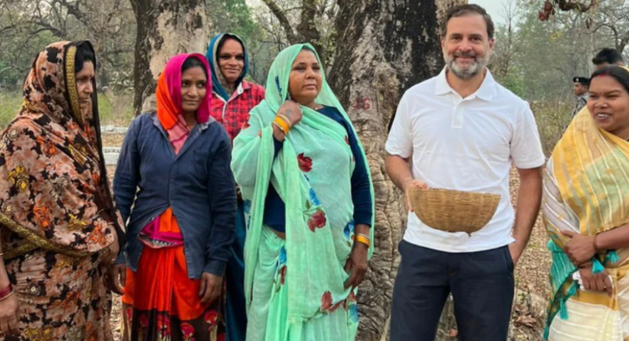 राहुल गांधी अदिवासी महिलाओं के साथ बीनते दिखे महुआ के फूल