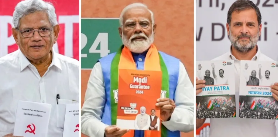 प्रधानमंत्री नरेंद्र मोदी ने 14 अप्रैल को आगामी लोकसभा चुनाव 2024 के लिए भारतीय जनता पार्टी (BJP) का घोषणापत्र जारी किया. बीजेपी अपने मेनिफेस्टो को ‘संकल्प पत्र’ कहती है. वहीं कांग्रेस पार्टी ने 5 अप्रैल को अपना घोषणापत्र जारी किया था और इसे ‘न्याय पत्र’ नाम दिया. लेफ्ट की बात करें तो भारतीय कम्युनिस्ट पार्टी (मार्क्सवादी) ने 4 अप्रैल को आगामी लोकसभा चुनावों के लिए अपना मेनिफोस्टो रिलीज किया था, जिसमें कई ऐसे वादे किए गए हैं जिसे लेकर बहस छिड़ गई है.