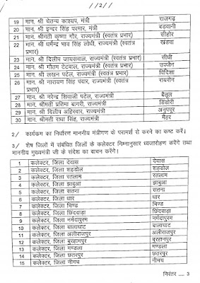 स्वतंत्रता दिवस पर प्रदेश के सीएम डा मोहन यादव भोपाल में, डिप्टी सीएम राजेंद्र शुक्ल सागर में, डिप्टी सीएम जगदीश देवड़ा जबलपुर, मंत्री कैलाश विजय वर्गीय इंदौरऔर मंत्री गोविंद राजपूत गुना में में ध्वजारोहण करेंगे। सामान्य प्रशासन विभाग द्वारा 15 अगस्त 2024 को स्वतंत्रता दिवस के अवसर पर मंत्रीगण जिला मुख्यालयों में राष्ट्रीय ध्वज फहराएंगे और मुख्यमंत्री जी के संदेश का वाचन करेंगे इस संबंध में आदेश जारी किए गए हैं