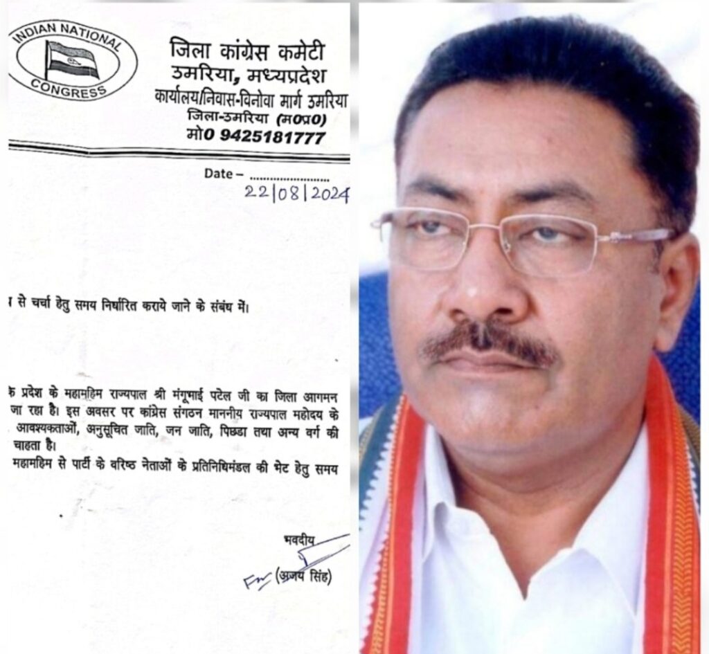 Congress ने प्रदेश के महामहिम Governer से जिले में संचालित योजनाओं पर चर्चा के लिए मिलने का समय मांगा