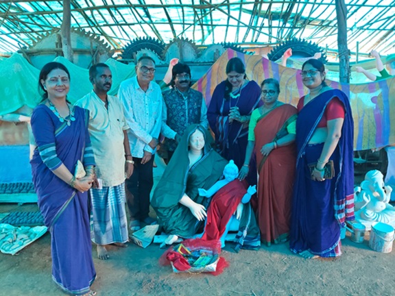 से अपने मायके में तीजा मनाने चंदखुरी आ रही है उनकी मूर्ति लगभग तैयार हो चुकी है शुक्रवार को बिलासपुर से छत्तीसगढ़िया महिला क्रांति सेना की अध्यक्ष लता राठौड़ अपनी टीम के सदस्य मधु कश्यप डा. सुनीता मिश्रा व लता कौशिक के साथ ग्राम निमोरा आकर मूर्तिकार पीलू राम साहू को माता कौशिल्या को पहनाने के लिए बिलासपुर से विशेष तौर पर बने हरे रंग की कोस्टउन्हा लुगरा और लाली पोलखा भेंट की