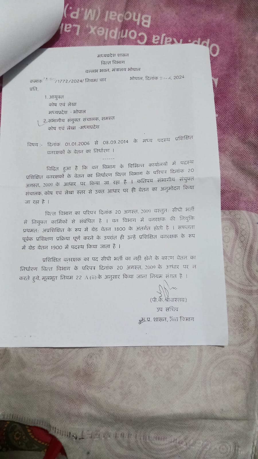 वहीं वन विभाग को जारी इस आदेश से वनरक्षकों में हडकंप मचा हुआ है उनके समक्ष यह स्थित मूलवेतन (वेतन बैंड) की गलत गणना के चलते बनी है। दरअसल, मध्य प्रदेश में 2006 तक वनरक्षकों का वेतनबैंड 2750 और ग्रेड-पे 1800 पर होता था। प्रमोशन पर उन्हें 3050 वेतन बैंड और 1900 ग्रेड-पे मिलता था। 2006 में 6वां वेतनमान लागू होने के बाद सरकार ने वनरक्षकों का वेतन बैंड 5680 और ग्रेड-पे 1900 कर दिया गया। वित्त विभाग ने पत्र में बताया, वन विभाग ने वेतन की गलत गणना की है और कोषालय अधिकारी भी उन्हें बढ़ा हुआ वेतन जारी करते रहे