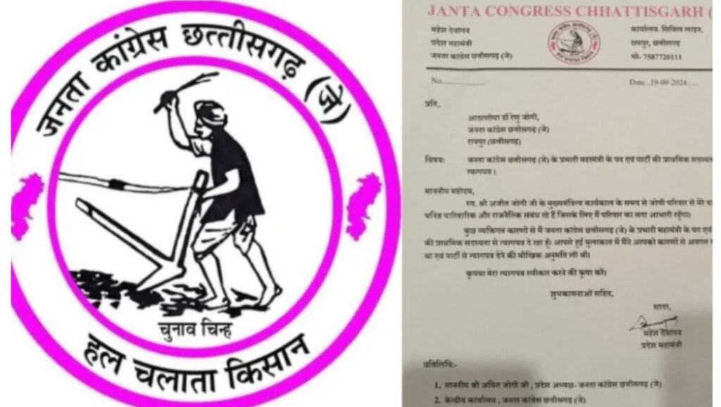 छत्तीसगढ़ में होने वाले आगामी नगरीय निकाय चुनाव से पहले जनता कांग्रेस छत्तीसगढ़ (जोगी) को बड़ा झटका लगा है. दरअसल, पार्टी के प्रभारी महामंत्री महेश देवांगन ने आज अपने पद और पार्टी की प्राथमिक सदस्यता से इस्तीफा दे दिया है उन्होंने राष्ट्रीय अध्यक्ष डॉ. रेणु जोगी को इस्तीफा पत्र प्रेषित किया है