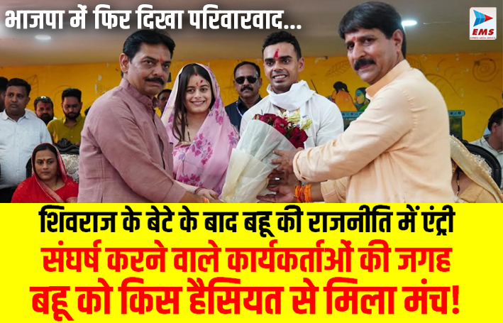 एक ओर भाजपा वंशवाद के खिलाफ मुखर है, दूसरी ओर उसी पार्टी के दिग्गज नेता और केंद्रीय कृषि मंत्री शिवराज सिंह चौहान की बहू अमानत चौहान का रविवार को भाजपा के स्थापना दिवस कार्यक्रम में राजनीतिक मंच पर पदार्पण, कार्यकर्ताओं के बीच सवालों का कारण बन गया है। रविवार को भैरूंदा में आयोजित कार्यक्रम में अमानत चौहान ने पार्टी के स्थापना दिवस पर न केवल मंच साझा किया, बल्कि जनता को संबोधित करते हुए खुद को बेटी के रूप में सेवा करने वाली बताया। वहीं, कई भाजपा कार्यकर्ताओं ने इसे वंशवाद की शुरुआत मानते हुए दवी जुवान में सवाल उठाए कि सड़कों पर संघर्ष हमने किया और मंच बहू को मिल गया?