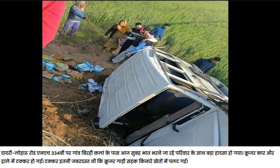 भात भरने जा रहे परिवार के साथ हुआ बड़ा हादसा, 4 महिलाओं सहित 12 लोग घायल March 11, 2024 No Comments Read More »