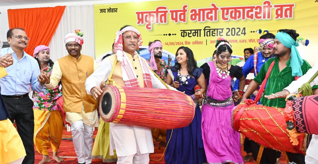 करमा तिहार 2024 कार्यक्रम प्रगति के साथ-साथ आदिवासी संस्कृति का संरक्षण भी है जरूरी- मुख्यमंत्री विष्णुदेव साय मांदर पर थाप देते हुए, करमा तिहार के उल्लास में झूमे मुख्यमंत्री September 16, 2024 No Comments Read More »